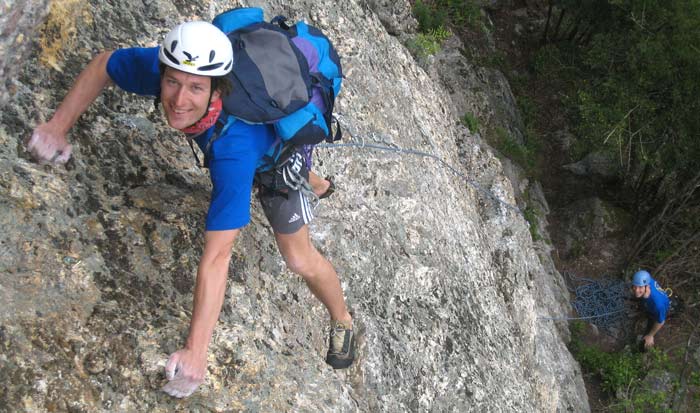 (In foto: Luca Coli e Filippo Casella al primo tiro di The Phantom of the Opera) Settore appoggiato con vie di più tiri. Per l'avvicinamento, oltre che dal settore del Ghiaccetto, si può salire lungo il sentiero per la falesia del Prune: parcheggio alla fonte (qualche tornante più in basso rispetto al belvedere), risalire lungo la strada fino al cartello Ferrata Sant'Antone; imboccare il sentiero e proseguire dritti in direzione Ghiaccetto, fin quando sulla sinistra si trova una deviazione opportunamente segnalata. Da qui, in pochi minuti si arriva all'attacco delle vie. RELAZIONI Sweeney Todd: raggiungere la partenza nella grotta per facili roccette. Primo strapiombo atletico in partenza e poi un secondo a metà via. Rocky horror picture show: partenza all'estremità sinistra del sentiero affrontando facile placchetta e poi una cengia erbosa (presenza di licheni). Da qui si affrontano vari strapiombi. Sosta su 3 fix con catena e moschettone a ghiera. Cats: può essere percorsa in un tiro unico. Strapiombi a metà parete e placca finale. Il mago di Oz: partenza da un risalto a cui si arriva aggirando delle rocce. Strapiombo a metà via. Mamma Mia: può essere realizzata anche in un unico tiro avendo cura di allungare i rinvii. The Phantom of the Opera: aperta dall'alto con chiodatura ravvicinata, ideale per principianti che vogliono cimentarsi su vie di più lunghezze. I tiri sono tutti attrezzati a fix da 10mm; inoltre le soste sono tutte provviste di catena e anello di calata. Discesa in doppia sulla via, o meglio per sentiero che dal Ghiaccetto porta all'attacco della ferrata.